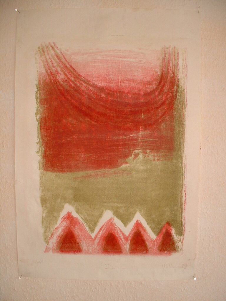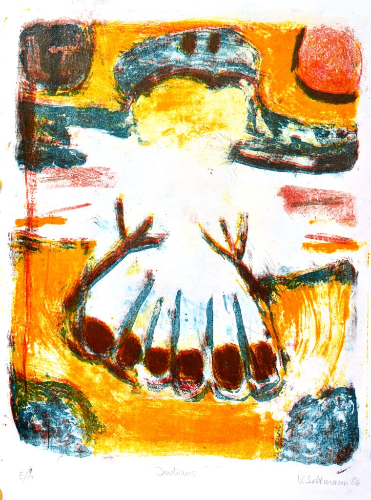 Lithographie Zwölf Naturreligionen Hamburg 2003-2006 „Lappi“, Farblithographie, 50x80cm, Hamburg 2003 „Pygmäe“, Farblithographie, 50x80cm, Hamburg 2003 „Aborigine“, Farblithographie 2006, 50x80cm „Indians“, Farblithographie, 50x80cm, Hamburg 2006 „Polynes“,Farblithographie, 50x80cm, Hamburg 2006 „Indones“, Farblithographie, 50x80cm, Hamburg 2006